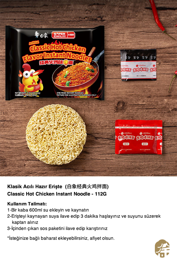 BAIXIANG KLASİK ACILI TAVUK HAZIR ERİŞTE (CLASSIC HOT CHICKEN INSTANT NOODLE) 白象经典火鸡拌面 - 112G